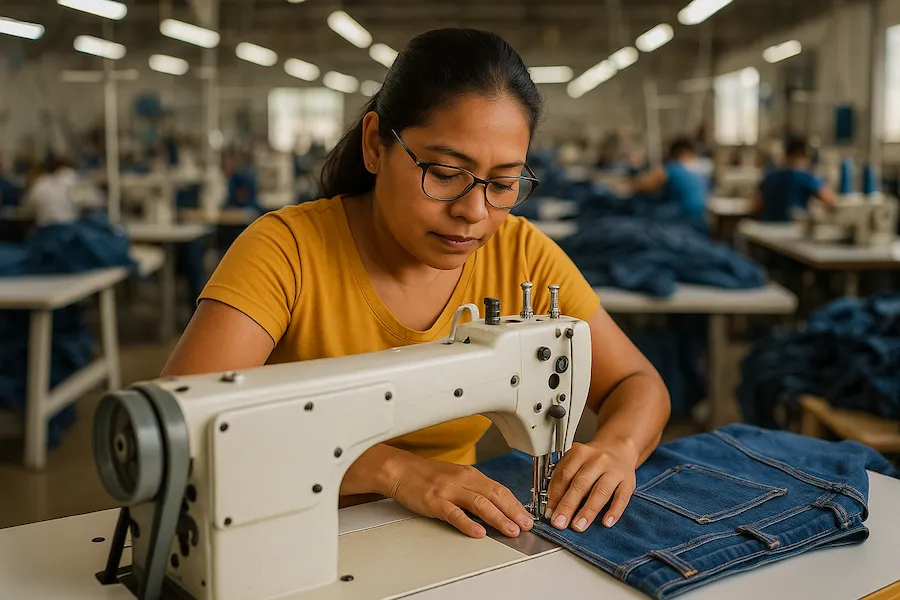 Trabajamos exclusivamente con denim de 12-14 oz/yd², el punto óptimo entre durabilidad y comodidad.